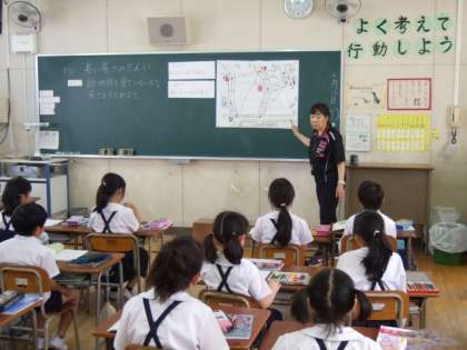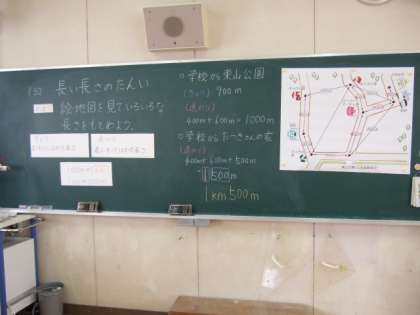 絵地図を使って「きょり」と「道のり」を学習し、道のりの計算をしていました。
