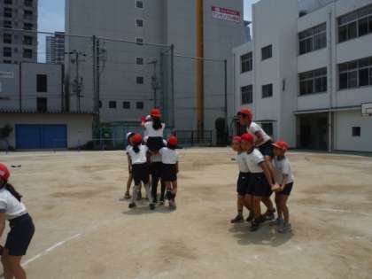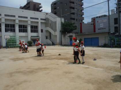 騎馬戦の練習をしました。どの騎馬も上手に移動し帽子の取り合いをしていました。当日は白熱した戦いが期待されそうです。