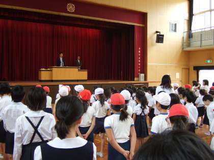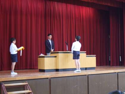 大阪梅田ライオンズクラブから登校班班長旗を贈呈されました。