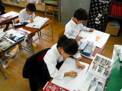 国語の「いろいろなふね」の学習のまとめとして,乗り物について,本で読んだことを調べてまとめています。