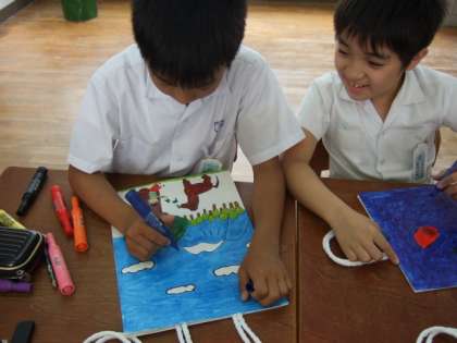 6月8日のキャンドルナイトに参加する5年生を運営事務局の方が取材に来ました。