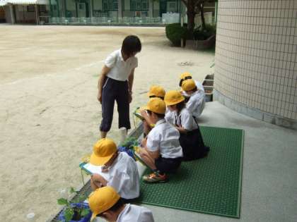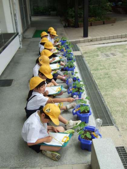 ドンドン想像をふくらませながら、種から育てたあさがおも大きくなってきています。