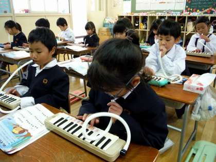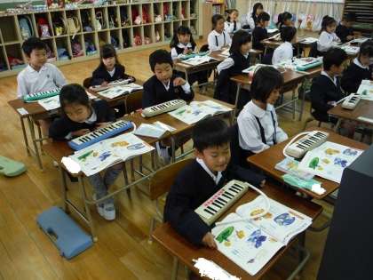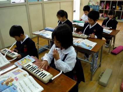 1学期から練習している鍵盤ハーモニカも,とても上手に演奏できるようになってきました。「どんぐりさんのおうち」「なかよし」「どれみでのぼろう」「きらきらぼし」を,指づかいに気をつけて吹く練習をしています。難しいところは,友だちどうし教え合ったり,励まし合ったりしながら,ぐんぐん上達しています。