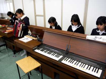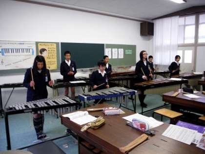 音楽の時間に,「風をきって」の合奏に取り組みました。リコーダー,オルガン,木琴,鉄琴,アコーディオンに分かれて演奏しました。