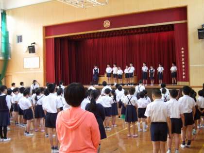 今日の児童集会は、集会委員会の自己紹介からはじまりました。