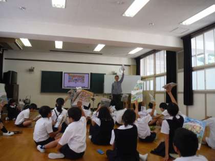 先生の合図で教科書を見せ外国語活動が始まりました。