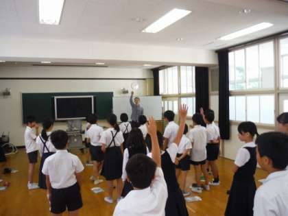 教科書を開き次の活動へ、教科書に書かれているスペルを覚え音を聞いてスペルを発表。しっかり手を挙げ発表できていました。英語を聞くのは苦手な児童もいますがゲーム感覚で楽しく活動できていました。