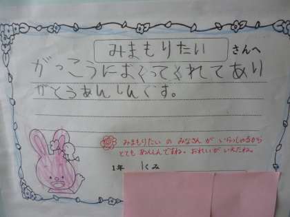 「みまもりたいのみなさんに おれいをいいたい」と書いた児童もいました。