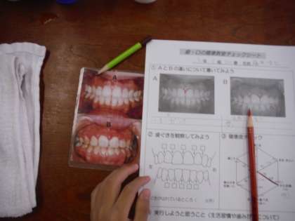最後に歯垢染め出し検査をしました。自分の歯を見ながらみんな赤くなっている部分を丁寧に磨いていました。今日の経験を活かしこれからも歯を大切にしていきましょう。