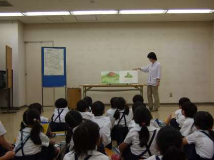 最初に館長さんの説明と大きな絵本の読み聞かせがありました。みんな静かに良い姿勢で聞くことができました。