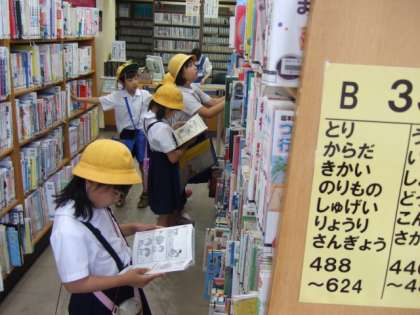 最後は、図書館の本などを見て回りました。学校の図書室との違いや利用しやすいようにどのような工夫がされているかなど、しっかりと調べることができました。お気に入りの本も一冊ずつ借りることもでき、とても喜んでいました。
