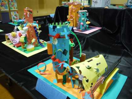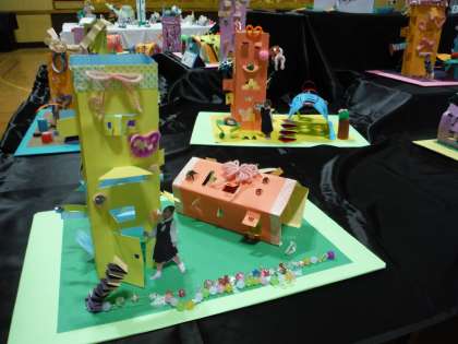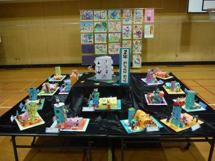 初めてカッターナイフを使いました。カラー方眼紙に切れ込みを入れて窓や飾りづくりをしました。