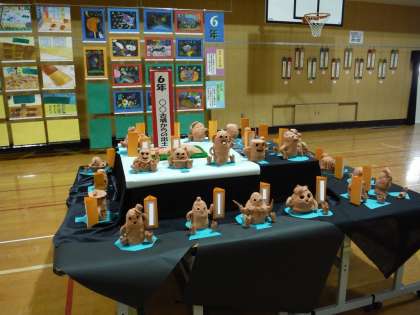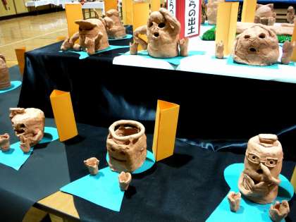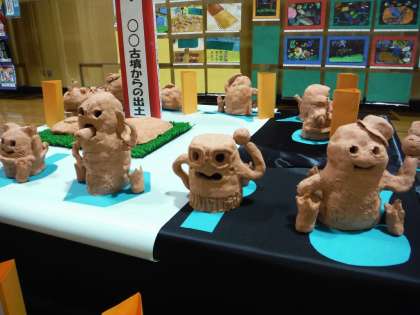 素焼き調粘土を使って,はにわをつくりました。腕や飾りを工夫してつくました。小さな土器や古墳もつくりました。