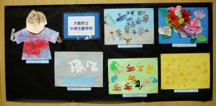 中津支援学校が作品展の際には,豊崎小学校の子どもたちの作品を出展しています。