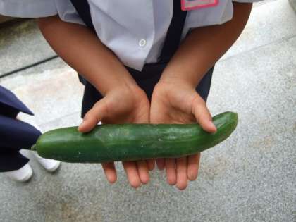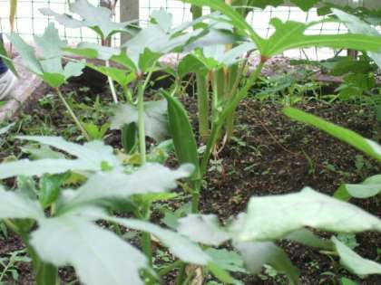 キュウリに、ナスに、ミニトマトに、ピーマンに、枝豆そしてオクラとたくさん実がなっています。