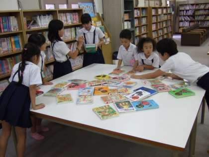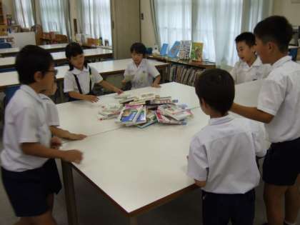 図書室では、たくさんの本の中から指定された本を探す「見つけろ!宝さがし」が行われていました。
