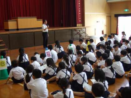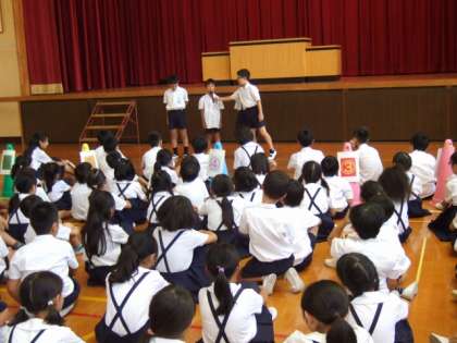 前半・後半のグループに分かれてお店まわりが終わった後、講堂に集合して閉会式を行いました。