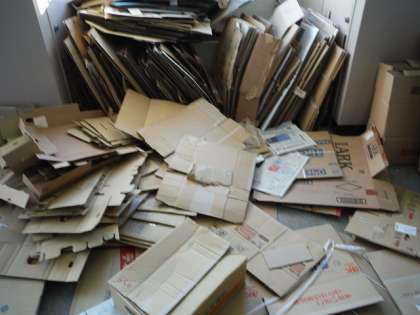 今日は朝から図画工作科の学習をします。今まで集めていた段ボールを講堂に運びました。