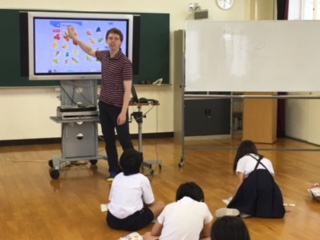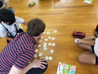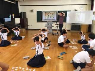 色々な単語で繰り返し「I like〜」を発音し、最後はキーワードゲームで盛り上がりました。キーワードを聞き取り、その単語を待ちきれずに、お手つき!!という児童もいました。