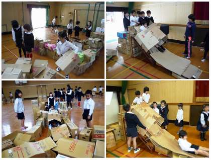1年生も2年生も,手づくりの「段ボールワールド」でとても楽しそうに遊んでいました。