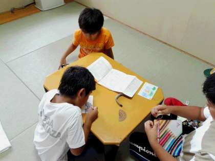 それぞれの家庭に、今日1日前半の高原での印象をはがきに書きました。一番感心したのは部屋が片付いていることです。エライ!