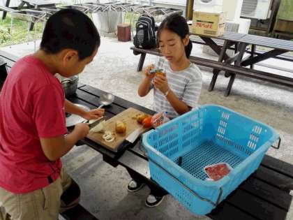 班毎に役割を決め、お昼ご飯のカレーライスを作っています。