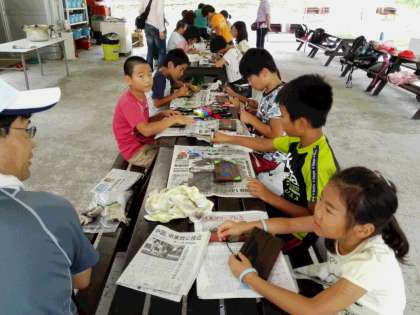 焼かれた板を艶が出るまで磨きます。磨ければポスカを使ってカラフルに絵付けです。みんなのイメージ通りの作品に仕上がればいいですが、悪戦苦闘しています。林間学習の思い出づくりです。仕上がりを乞うご期待下さい。