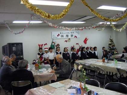 今日は2年生参加しました。元気にあいさつした後,英語バージョンの「きらきら星」「ジングルベル」を歌いました。