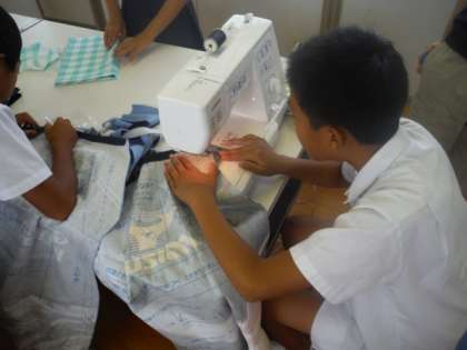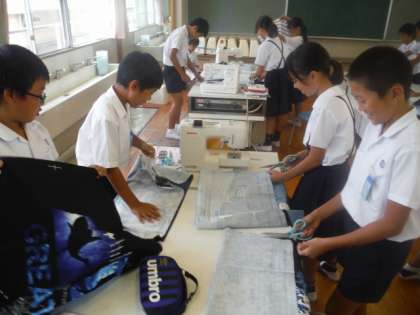 ミシンの基礎を復習して、エプロンづくりに取り組みました。とても真剣なまなざしでミシンを動かしていました。自分たちのお気に入りのエプロンが仕上がるようにがんばります。