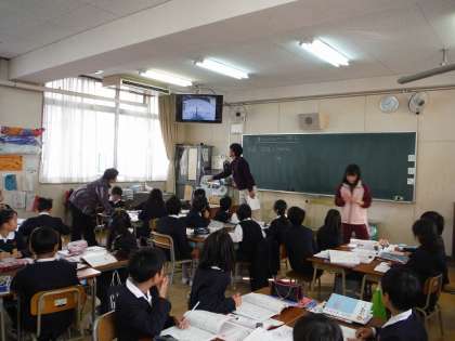 教材提示装置で拡大しためもりは読みやすかったですが,実際のはかりのめもりはずいぶんと細かい。めもりを一生懸命に数えました。