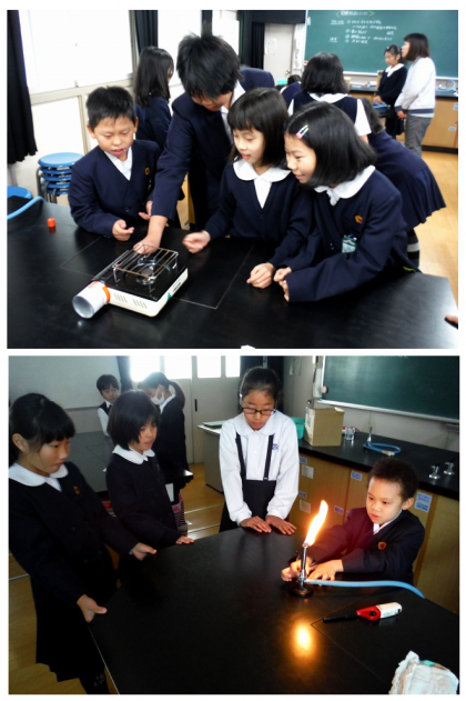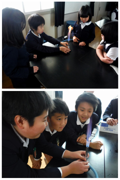 次は,ガスバーナーです。使ったことのない器具を使いこなそうと,みんな真剣そのもの。目がきらきらと輝いていました。