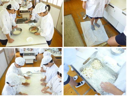 修学旅行が延期になり、給食がないこともあり今日はみんなで力を合わせてうどんを打ちました。手でコネコネ、足でふみふみ。作業が進むにつれて声かけも良くなり、しっかり協力して活動ができていました。最後はおいしそうにみんなで残さず食べました。