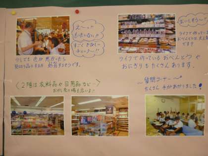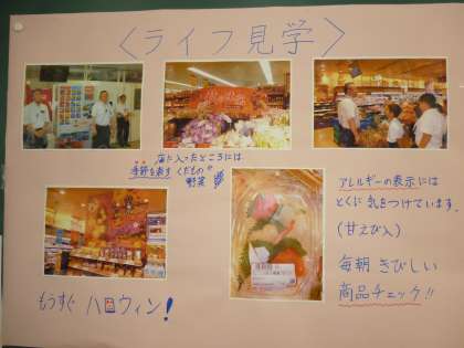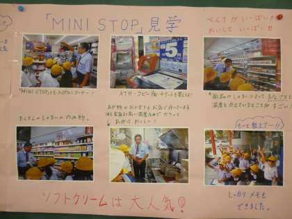 お店のご協力で、「ライフ」と「MINISTOP」へ見学に行かせていただき、スーパーマーケットとコンビニの違いや、それぞれの特長を調べることができました。共通していることは、お客さんに喜んでもらうために色々な工夫をしていることと、商品を厳しくチェックして安全に気をつけているということでした。子どもたちは、学習したことをしっかりとノートにまとめました。