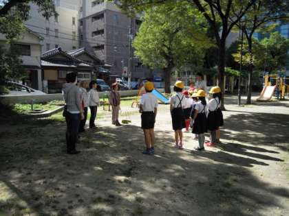 たてわり活動の一環として、登校班別に分かれて校区内の公園の清掃活動を行いました。