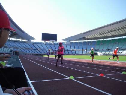 100mの直線を力いっぱい走り、学校対抗リレーではしっかりとバトンをつなぎとてもよく頑張りました。