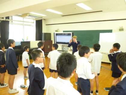 今日から新しい外国語のteacherが来ました。子どもたちは新しいteacherと楽しく外国語活動をしました。英語を聞いて活動、聞いて発音。みんな元気に取り組んでいました。