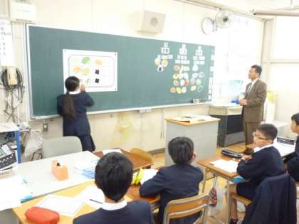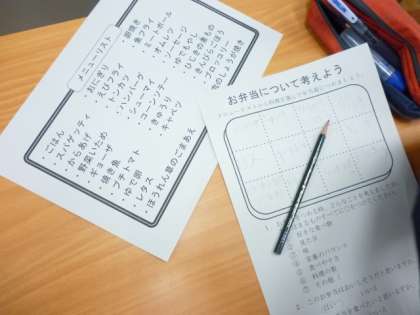 今日は、栄養士の先生が来られての栄養指導でした。普段の食事の赤・黄・緑とは違い、お弁当は「主食・主菜・副菜」の割合が大事だと教えてもらいました。各自でプリントを使い一人一人が考えたお弁当をつくりました。みんなよく考えお弁当の中身を工夫していました。