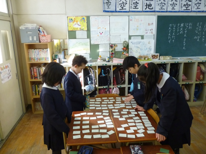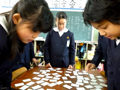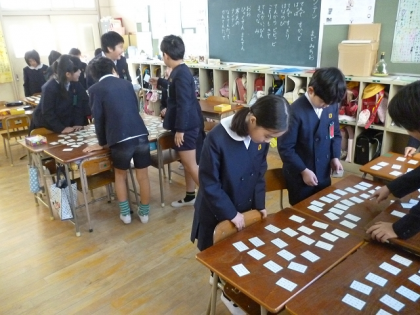 子どもたちが楽しく百人一首をしている声が,教室中に響いています。
