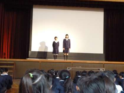 今日は募金参加のお礼と報告を児童会で行いました。