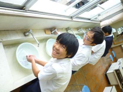 家庭科の学習で洗たく実習を行いました。生活している中で起こる、衣類の汚れを想定して、汚れた布を自分たちの考えた洗たく方法でゴシゴシジャブジャブ。さあきれいになったかな?手洗いの限界が…洗たくの難しさを学びました。
