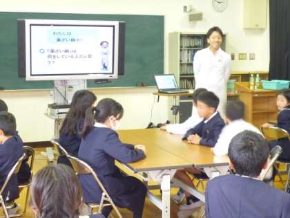最後に薬物乱用のついて話を聞きました。子どもたちは興味をもって話を聞き、「薬は必要なとき以外飲まない」「今までまちがった飲み方をしていることがわかった」などの感想を言っていました。薬についての知識がしっかり身につきました。