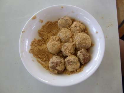 ひまわり教室で、きな粉あめづくりをしました。作り方は簡単!レンジでハチミツを温めてきな粉を混ぜたら出来上がり!