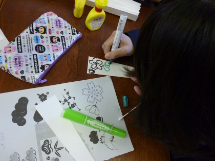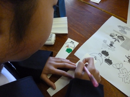 「松,梅,桜,鶴」などのイラストを,丁寧に描きました。
