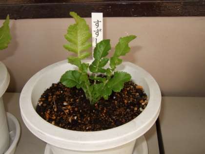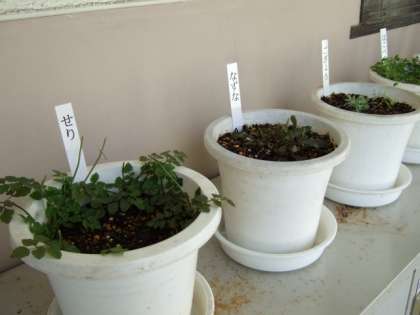 昨年の「秋の七草」に続き、管理作業員の中野さんが、「春の七草」を職員室前に置いてくれました。