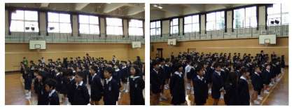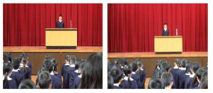 校長先生のお話の後、5・6年生の児童代表が「冬休みの反省と3学期の目標」をそれぞれ、マイクになしで大きな声で立派に発表しました。
