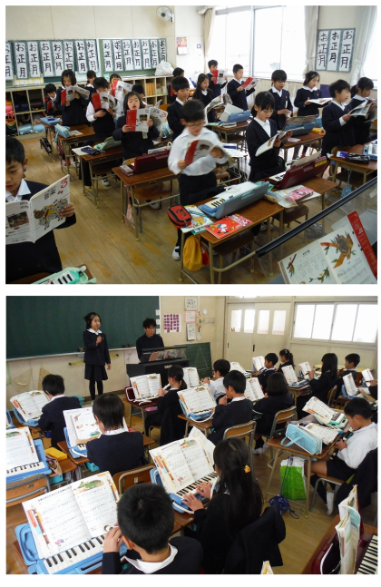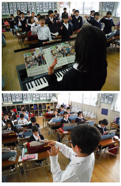 無理して大きな声を出さなくても,きれいな発声を心がければ27人の声がそろって,美しい声が教室中に響きます。