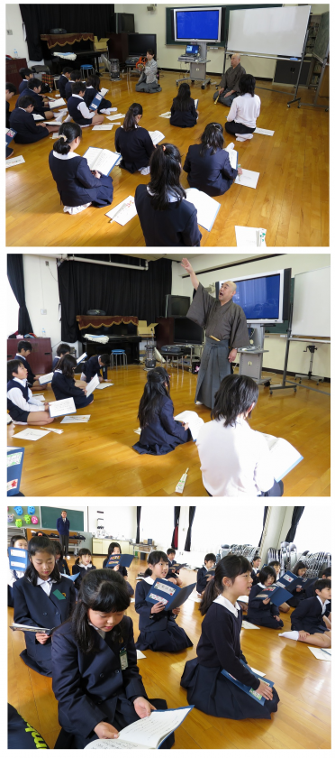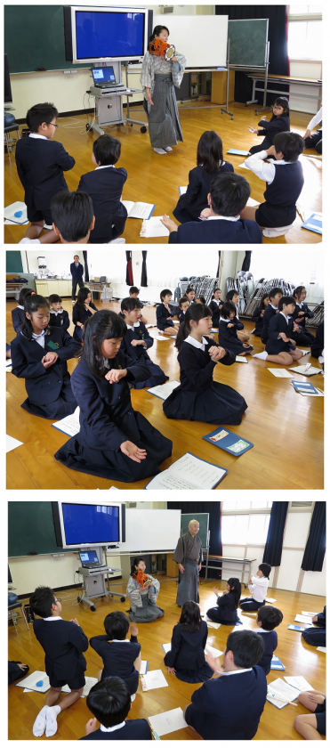 能楽独特のリズムや音程で,子どもたちは少々戸惑いながらも,教えていただいたとおりに口ずさんでいました。