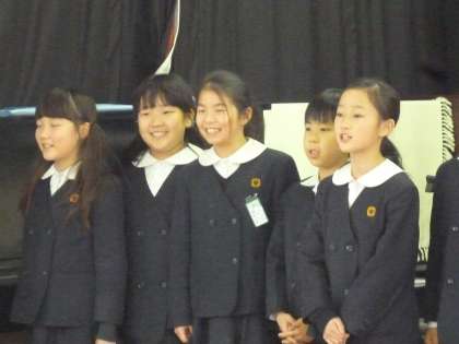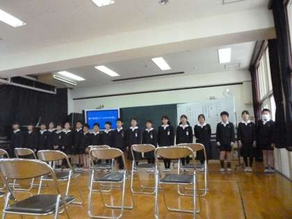 意見発表は,「将来の夢」「おうちの方へ」「今がんばっていること」「これからがんばりたいこと」などを1分程度でスピーチしました。おうちの方もたくさん見ておられる中,緊張しながらも原稿用紙1枚分の作文をしっかり覚えて発表することができました。