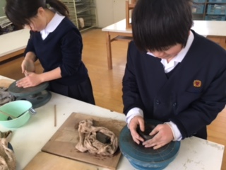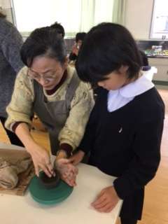 1.2.5.6時間目に陶芸を行いました。「やったことありますか?」の質問にほとんどの子が「初めて!」とのことでしたが、みんな真剣な表情で世界に一つだけの陶器を大切に完成させていました。