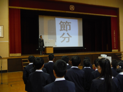 「今日は,『節分』です。節分は,季節を分けるという意味です。暦の上では,今日までが冬,明日からは春です。」